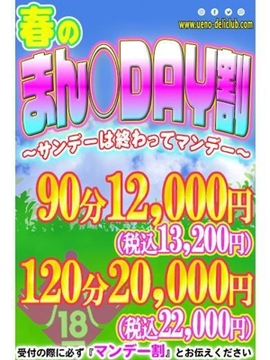 受付けの際に『マンデー割』とお伝え下さい∞