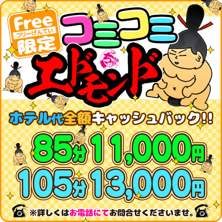 【85分11,000円】ホテル代その場で全額キャッシュバック!!フリー限定コミコミエドモンドパック!