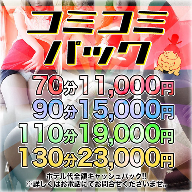 【コミコミパック】90分15,000円ホテル代その場で全額キャッシュバック!!