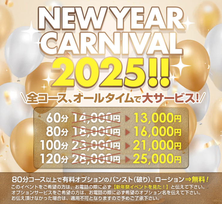 本日、人気嬢多数出勤!お得な新年祭2025!開催中!